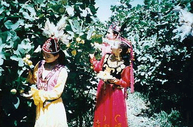 炎夏,當(dāng)游人徜徉于無(wú)花果園內(nèi),面對(duì)那濃郁的、墨綠墨綠的大葉子下那汁濃欲滴的、金燦燦的無(wú)花果,會(huì)給人一種賞心悅目、清爽溫馨的感覺(jué)。坐在主人的花氈子上,吃著香甜的無(wú)花果,聽(tīng)果農(nóng)講述關(guān)于無(wú)花果的一個(gè)個(gè)動(dòng)人的傳說(shuō),會(huì)給人增添無(wú)限的樂(lè)趣。