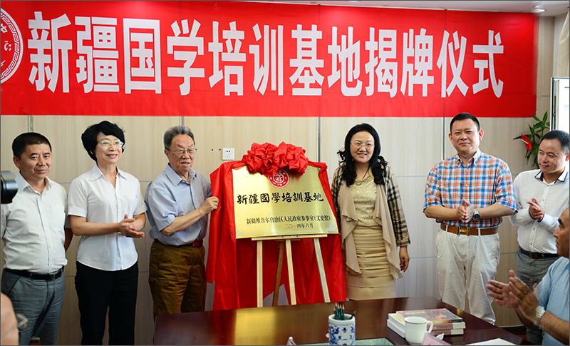 為弘揚(yáng)中華民族傳統(tǒng)文化精華、建設(shè)各民族共有的精神家園,由自治區(qū)人民政府參事室(文史館)主導(dǎo)的“新疆國學(xué)培訓(xùn)基地揭牌儀式”,于 6月23日在自治區(qū)政府參事室(文史館)會議室隆重舉行。國家文化部原部長、中央文史研究館館員、自治區(qū)人民政府文化顧問王蒙和自治區(qū)人民政府參事室(文史館)黨組書記張曉寧為新疆國學(xué)培訓(xùn)基地揭牌,標(biāo)志著自治區(qū)人民政府參事室(文史館)在我區(qū)設(shè)立的第一家國學(xué)培訓(xùn)基地在新疆華春投資集團(tuán)正式建立。