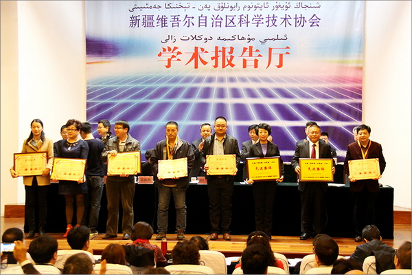 3月24日,在自治區(qū)科協(xié)全委會議隆重的頒獎儀式上,頒發(fā)了由中國科協(xié)、中華全國總工會、國務院國資委、發(fā)改委、科技部聯(lián)合表彰的2013-2014年度全國“講理想、比貢獻” 活動先進集體和個人的獎牌和榮譽證書,新疆華春投資集團和李成功總裁分別被授予全國“講理想、比貢獻”活動先進集體和優(yōu)秀組織者榮譽稱號。